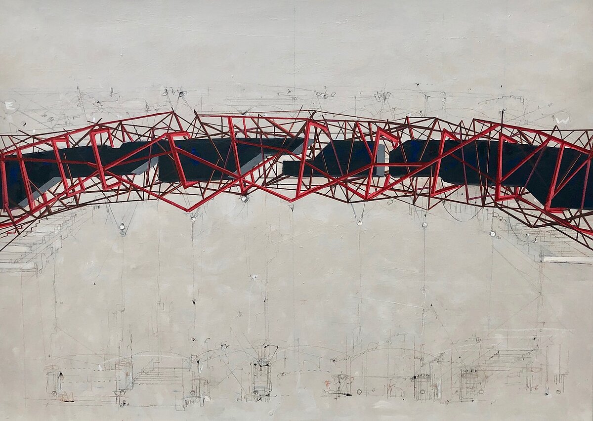 Jes Fomsgaard 'Bridge' Bl.teknik på lærred 100x140 cm | solgt