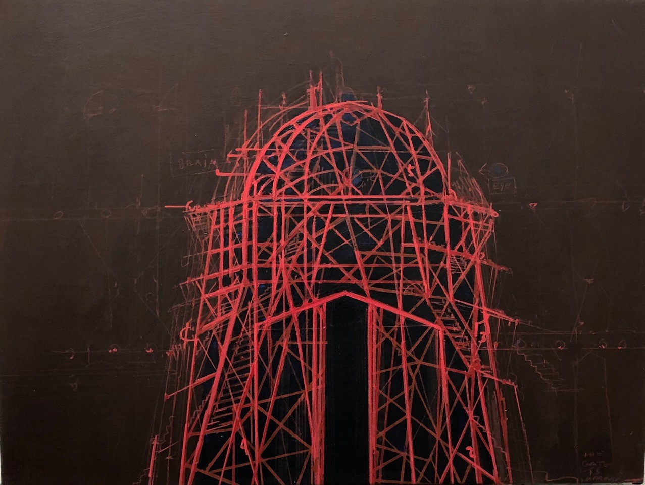 Jes Fomsgaard 'Red Dome' Akryl og pen på lærred 60x80 cm