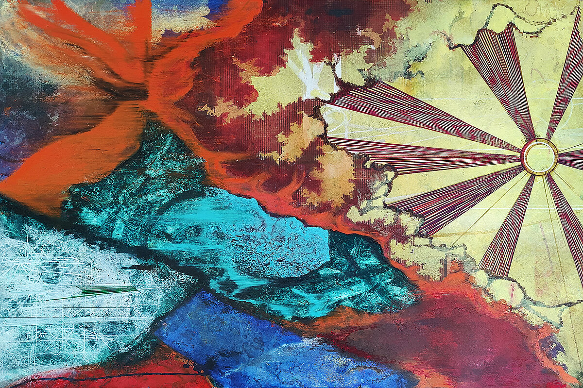 'Under Ground Binary Sun', 2024 Bl.teknik på lærred 160x110 cm