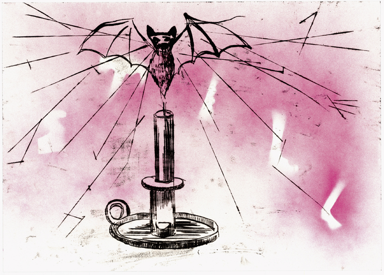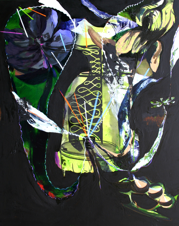 'Shine Bright My Black Light | 2015Olie og linoleumstryk på lærred | 150x120 cm | solgt