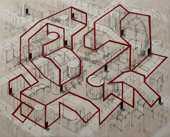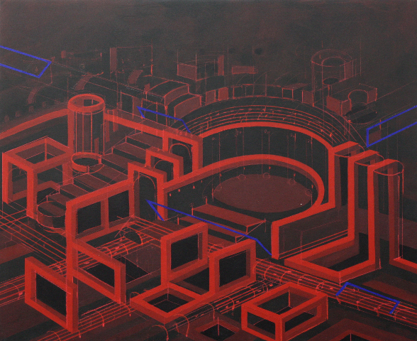 'Kulisse til opera' Bl.tenik på lærred 115x140 cm | solgt