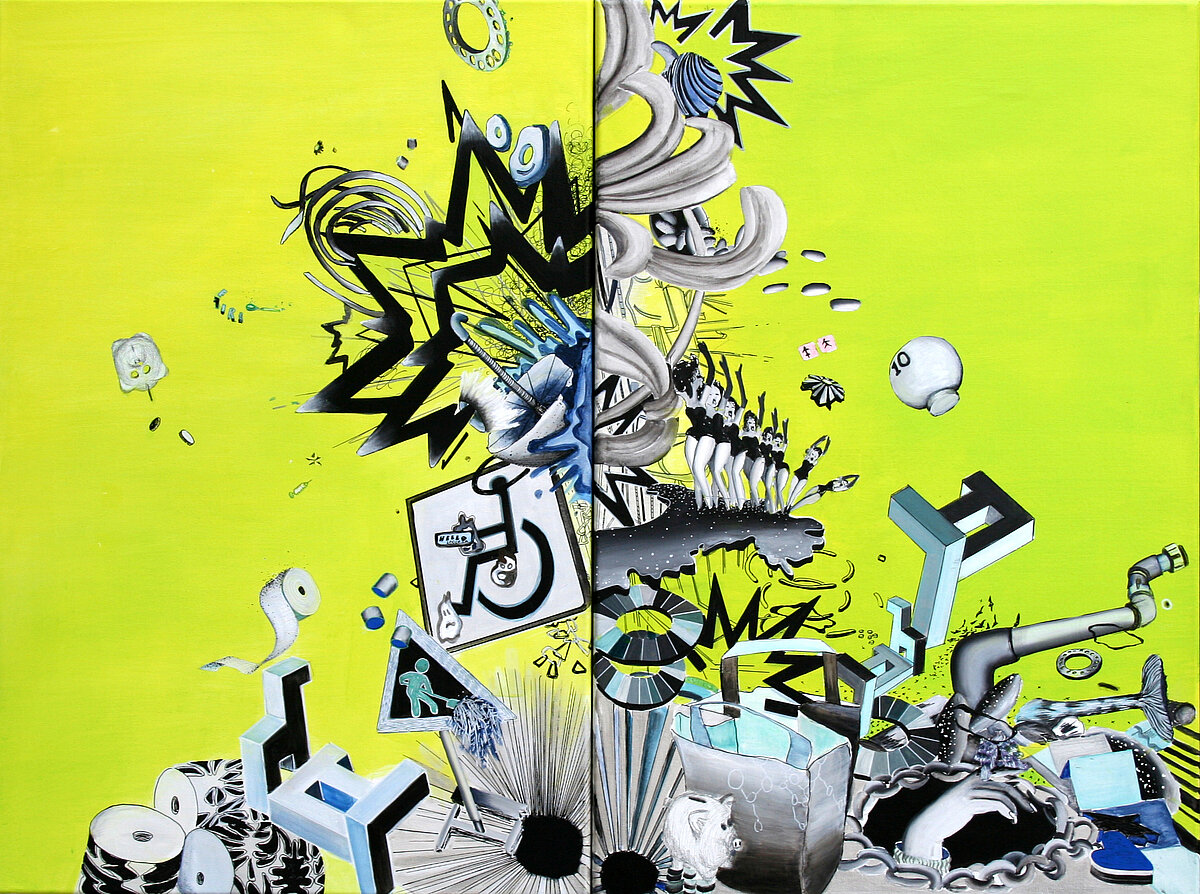 'House of Odd' Akryl og bl.teknik på lærred 75x95 cm | solgt