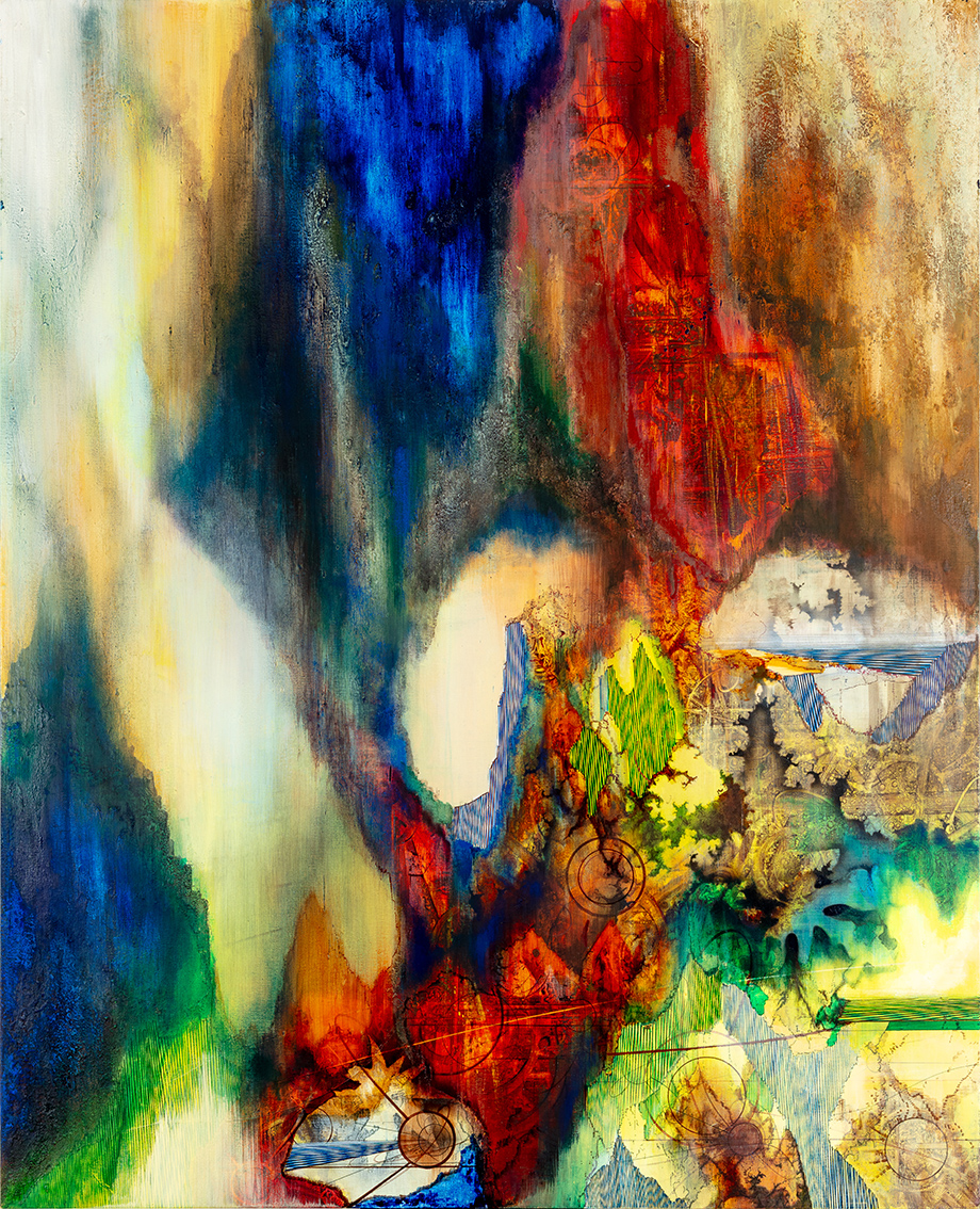 Julie Boserup 'Unlevelling I', 2024 Mixed media på papir 59,4x42 cm